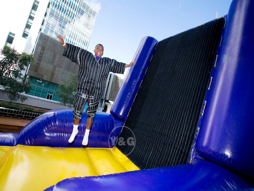 What's it like to'stick on' the wall just like Spider Man? That must be cool! But I hope someone can rescue you off the Inflatable Velcro Wall!