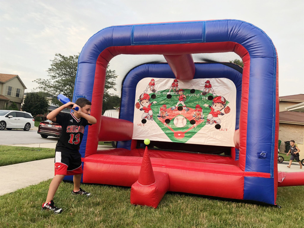 Where are the little baseball players? The inflatable baseball game is ready to begin. Come and join the game to see who will be the best scorer of the day