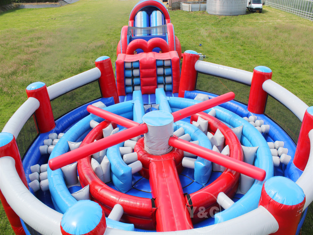 KAPOW's unique elements are the two sets of rotating boom arms. While you're still trying to get over the obstacle, kapow's spinning arm could turn in front of you and give you a whack at any moment!!