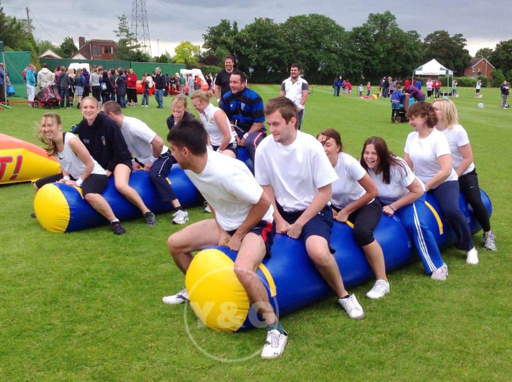 jump, jump, jump: come together now!This is a classic bounce game, suitable for children's parties, as well as organized parties and various team-building activities for your community or village. The players  sit on the tube and have to try and bounce their way to the other side of the trackIt is worth noting that walking is strictly forbidden. As its name suggests, runners must jump across the finish line. A bouncing tube is a great way to exercise and perfect your coordination skills, and its main benefit is the fun it provides!